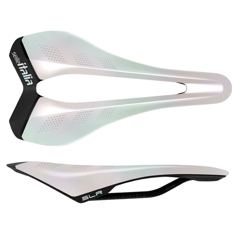 シェルにはオパールホワイトの反射グラフィックが施され、Selle ItaliaのロゴとSLRのモデル名が描かれています。