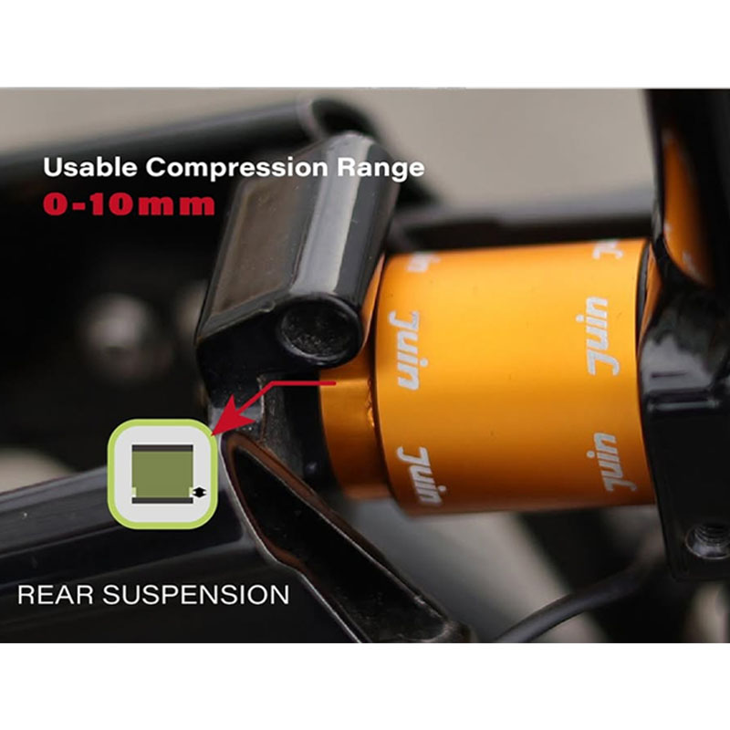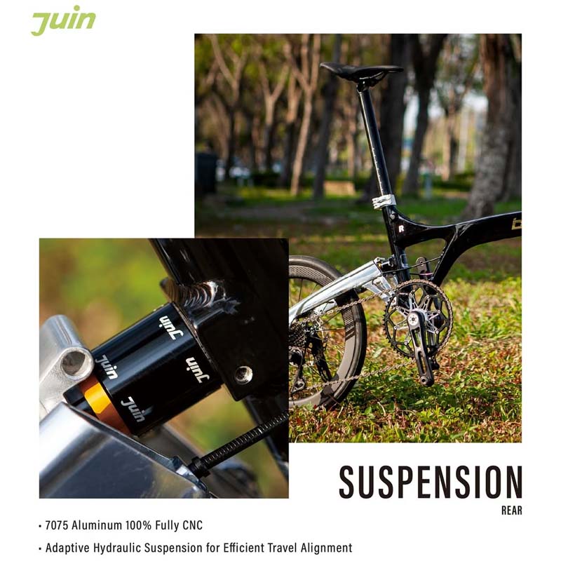BIRDYのコンパクトなフレームに対応するリアサスペンションとして、油圧・スプリング・エラストマーを組み合わせたハイブリッドダンパーを採用。