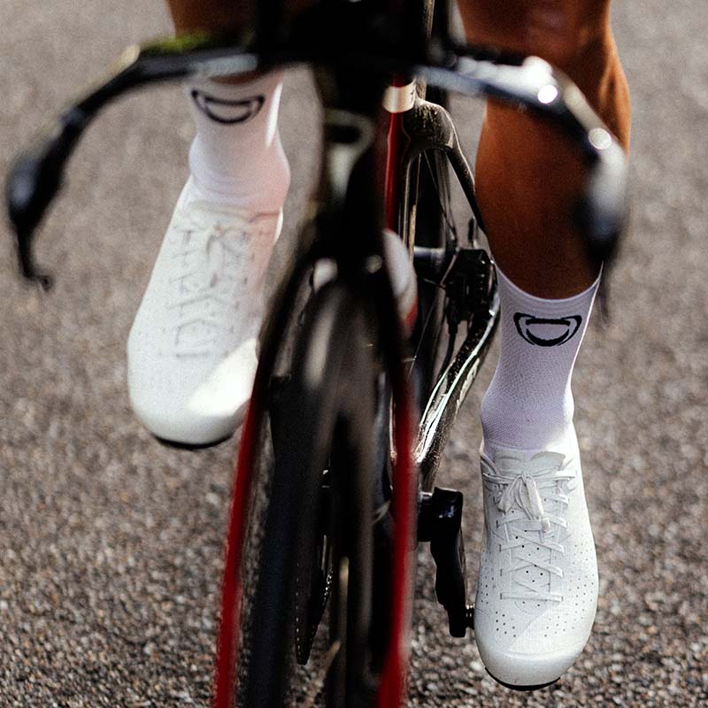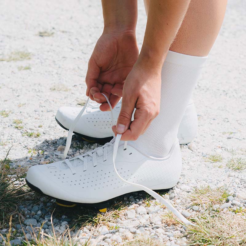 シューレース(編み上げ)が足全体への圧力バランスを細かく調整でき、足とシューズが一体化するような“ロックイン”フィットを生み出します。鋭い加速時からロングライドまで、快適性と高いペダリング効率を持続します。