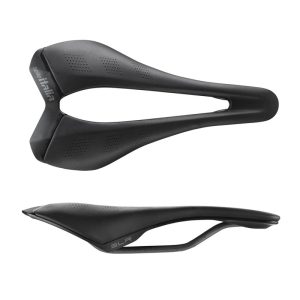 これは、UCI(国際自転車競技連合)が定める最小サイズ240mmをクリアしつつ、できるだけ短く設計された最新のショートサドルです。
