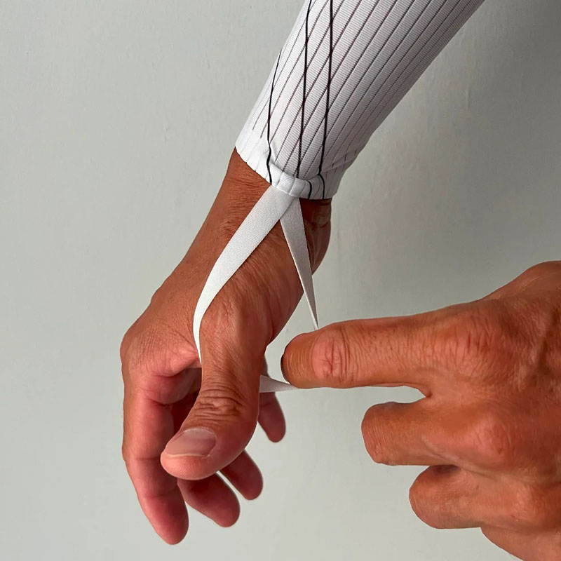 サムループ(親指ループ)付きでライド中の動きでもスリーブのずれ上がりを防止。