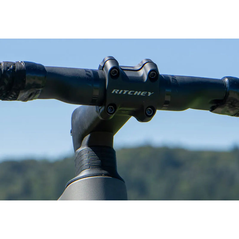 美観・空力・ケーブル保護を両立したRitcheyの内装配線システムで、ハンドル周りからフレーム内へケーブルをすっきり内装可能。